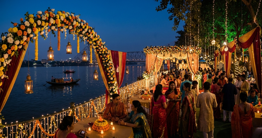 From elegant luxury wedding halls in Kolkata to scenic garden venues, heritage spaces and beautiful riverside locations, the city offers countless possibilities for unforgettable celebrations.