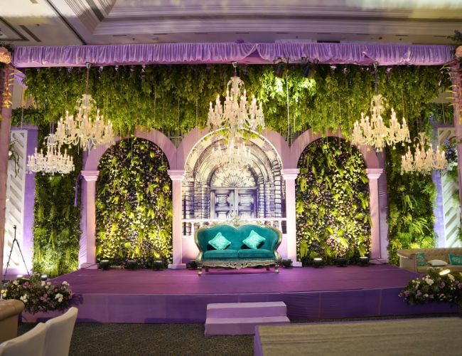 Bespoke mandaps, stage designs, varmala setups, and themed entrances.